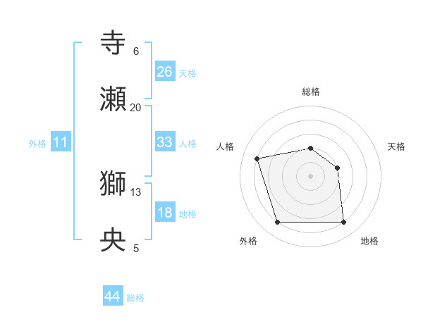 寺瀬 獅央さんの総格は44画の2点!
