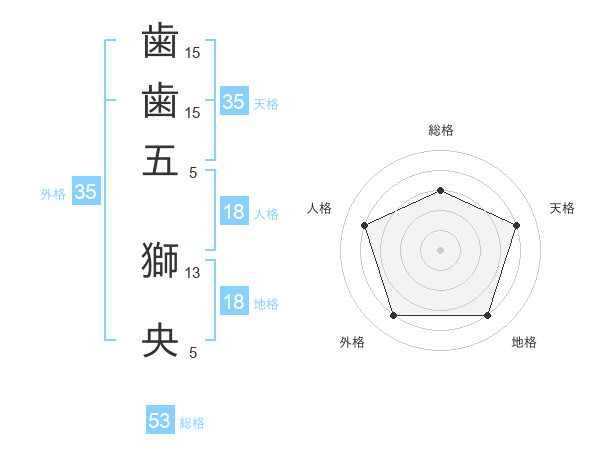 歯歯五 獅央さんの外格は35画の4点!