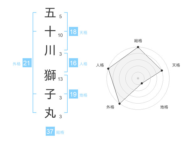五十川 獅子丸さんを姓名の画数から五運を鑑定
