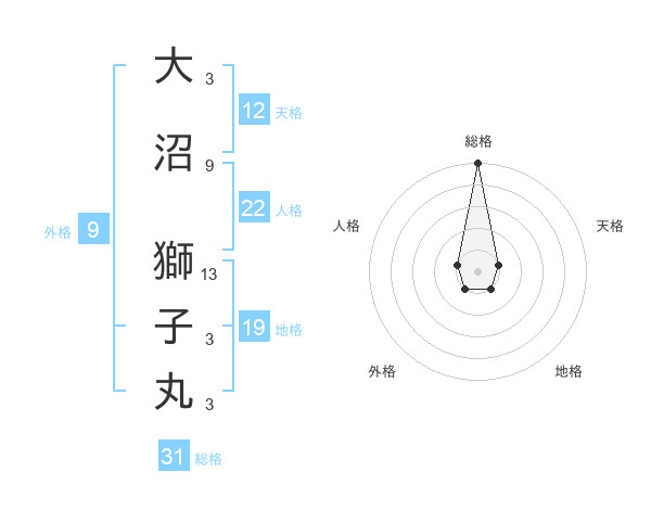 大沼 獅子丸さんを姓名の画数から五運を鑑定