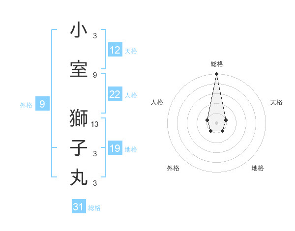 小室 獅子丸さんの総格は31画の5点!