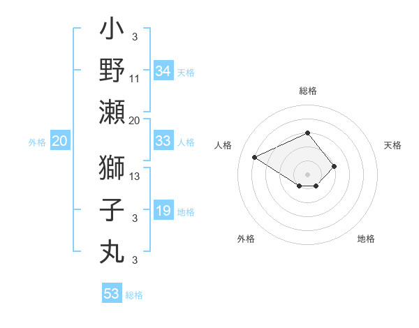 小野瀬 獅子丸さんを姓名の画数から五運を鑑定