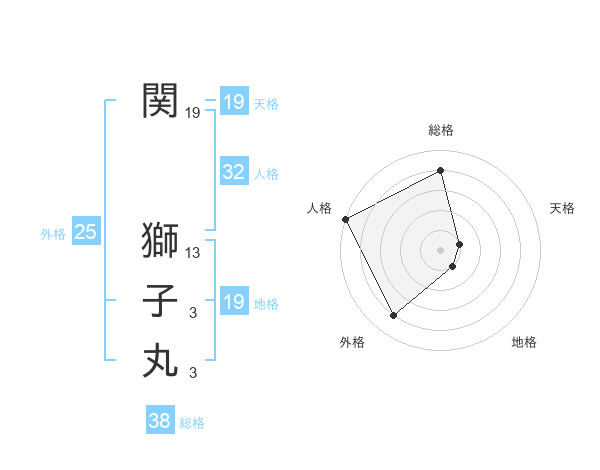 関 獅子丸さんの総格は38画の4点!