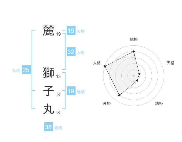 麓 獅子丸さんの総格は38画の4点!