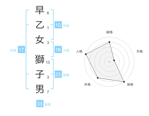 早乙女 獅子男さんを姓名の画数から五運を鑑定