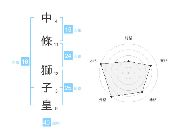 中條 獅子皇さんの総格は40画の2点!