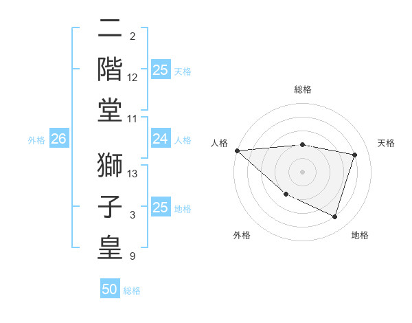 二階堂 獅子皇さんを姓名の画数から五運を鑑定
