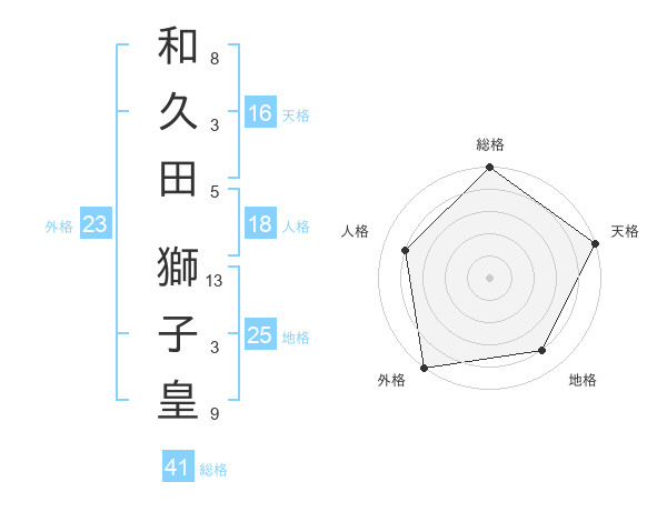 和久田 獅子皇さんの外格は23画の5点!