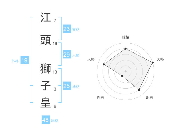 江頭 獅子皇さんを姓名の画数から五運を鑑定
