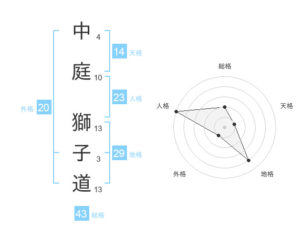 中庭 獅子道さんを姓名の画数から五運を鑑定