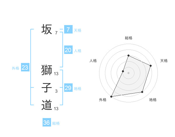 坂 獅子道さんの外格は23画の5点!