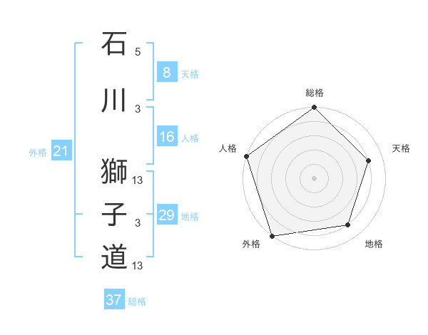 石川 獅子道さんを姓名の画数から五運を鑑定