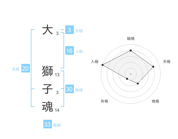 大 獅子魂さんの総格は33画の4点!