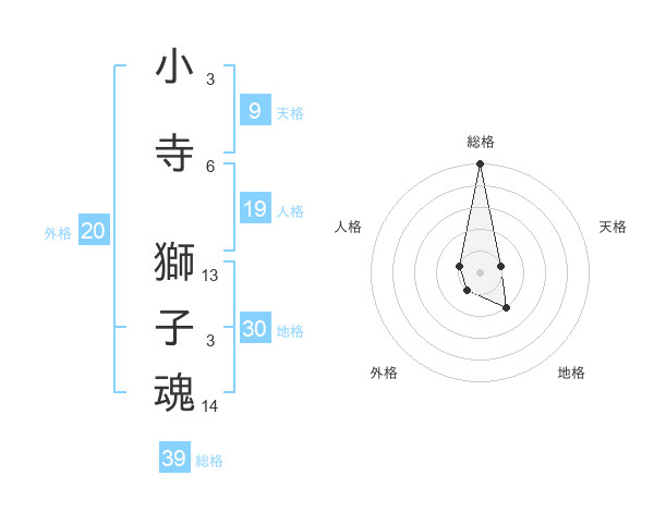 小寺 獅子魂さんの総格は39画の5点!