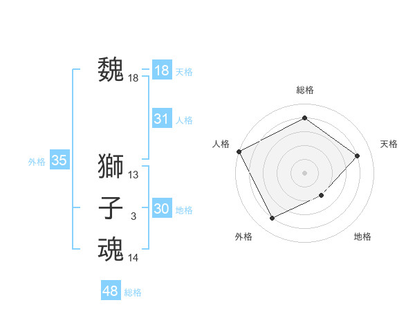 魏 獅子魂さんの総格は48画の4点!