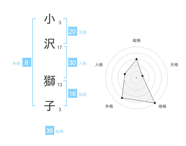 小沢 獅子さんの天格は20画の1点!