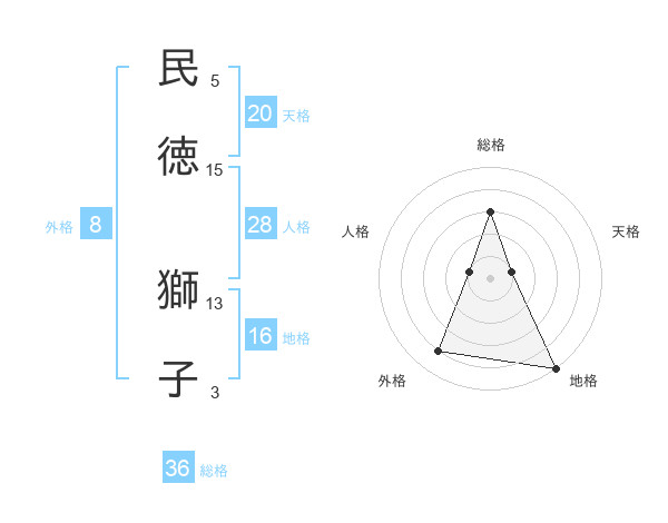 民徳 獅子さんの天格は20画の1点!
