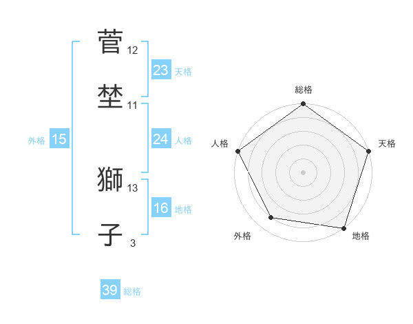 菅埜 獅子さんを姓名の画数から五運を鑑定