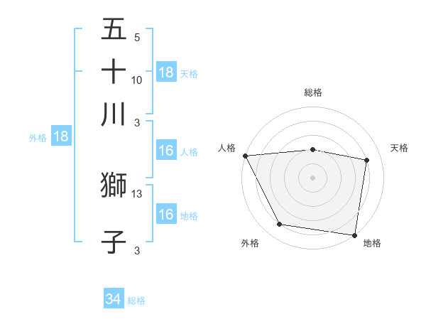 五十川 獅子さんを姓名の画数から五運を鑑定