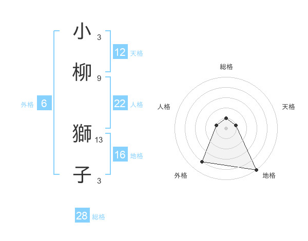 小柳 獅子さんを姓名の画数から五運を鑑定