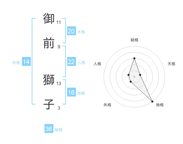 御前 獅子さんの天格は20画の1点!