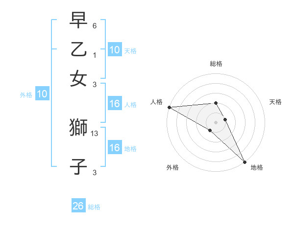 早乙女 獅子さんを姓名の画数から五運を鑑定