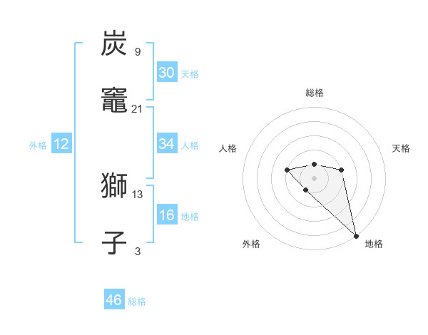 炭竈 獅子さんの総格は46画の1点!