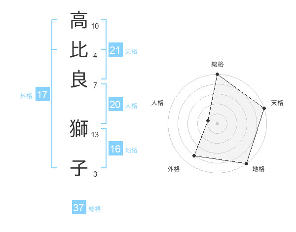 高比良 獅子さんの総格は37画の5点!
