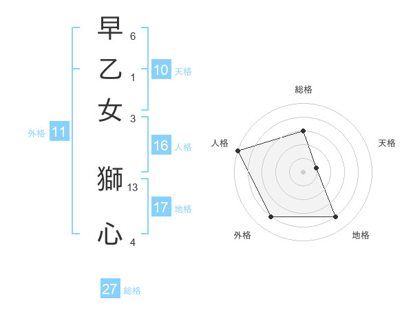 早乙女 獅心さんを姓名の画数から五運を鑑定