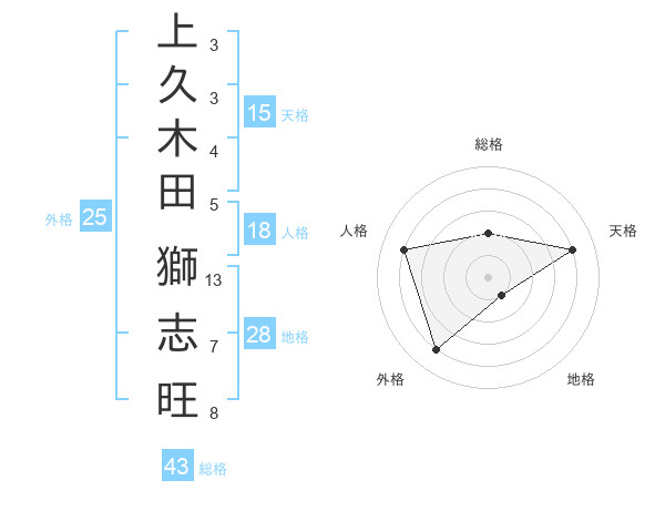上久木田 獅志旺さんを姓名の画数から五運を鑑定