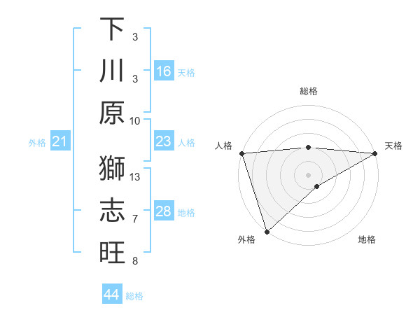 下川原 獅志旺さんを姓名の画数から五運を鑑定