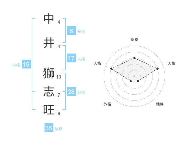 中井 獅志旺さんを姓名の画数から五運を鑑定