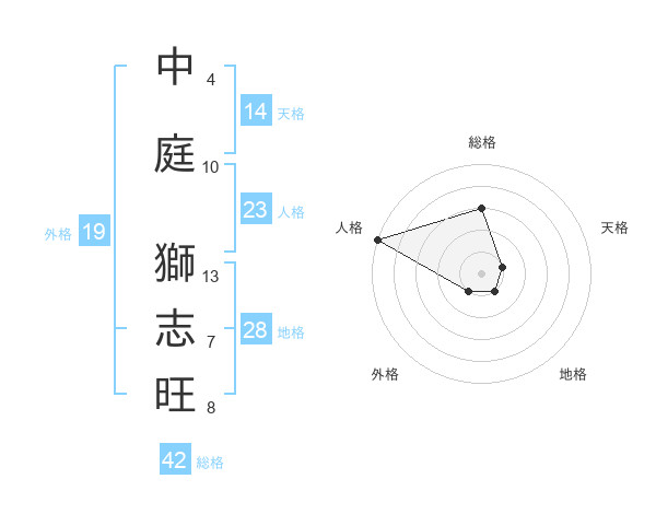 中庭 獅志旺さんを姓名の画数から五運を鑑定