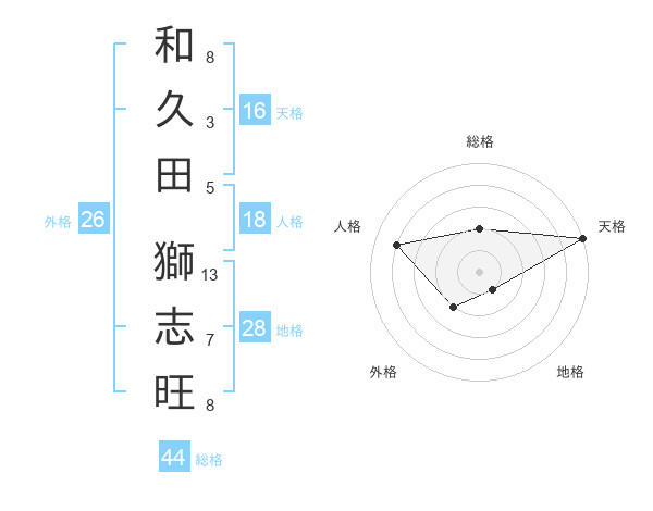 和久田 獅志旺さんを姓名の画数から五運を鑑定