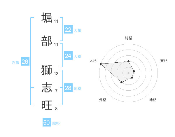 堀部 獅志旺さんを姓名の画数から五運を鑑定