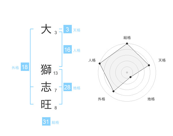 大 獅志旺さんを姓名の画数から五運を鑑定