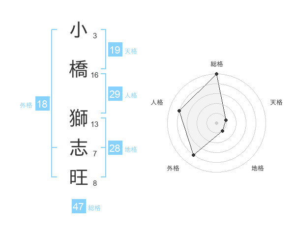 小橋 獅志旺さんを姓名の画数から五運を鑑定