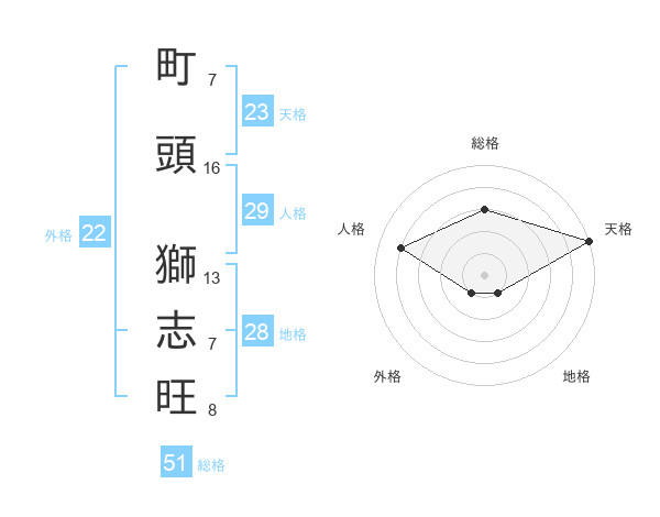 町頭 獅志旺さんを姓名の画数から五運を鑑定