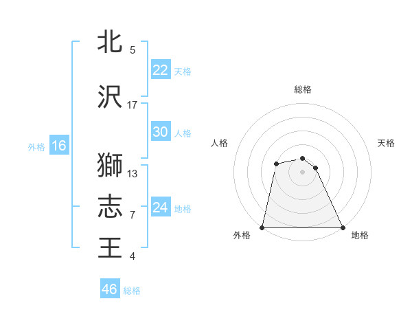 北沢 獅志王さんの地格は24画の5点!