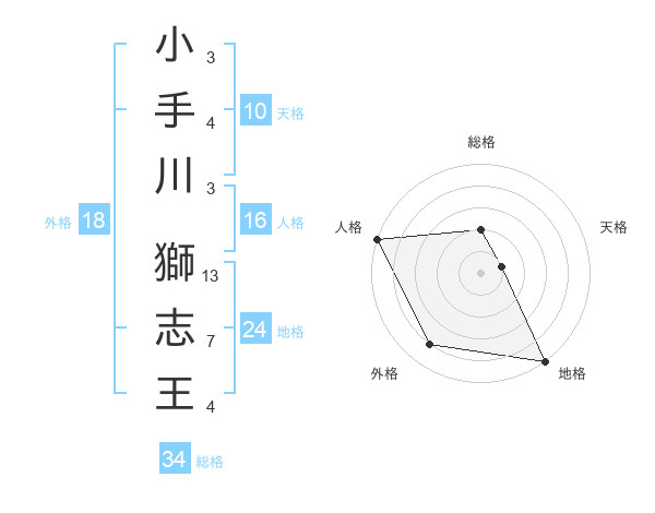 小手川 獅志王さんを姓名の画数から五運を鑑定