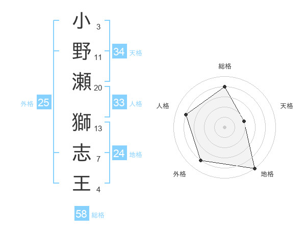 小野瀬 獅志王さんの総格は58画の4点