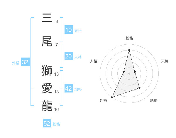 三尾 獅愛龍さんを姓名の画数から五運を鑑定