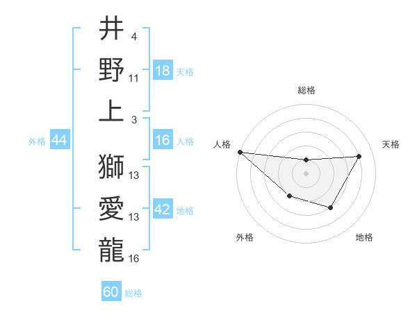 井野上 獅愛龍さんの総格は60画の1点!