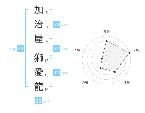 加治屋 獅愛龍さんの総格は65画の4点!