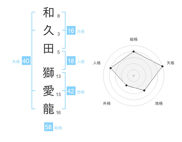和久田 獅愛龍さんを姓名の画数から五運を鑑定