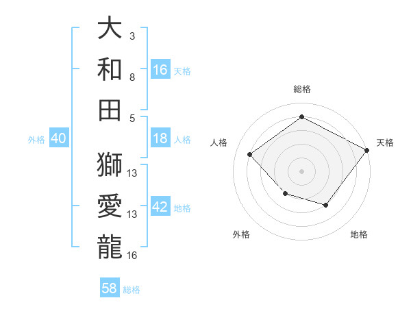 大和田 獅愛龍さんの総格は58画の4点!