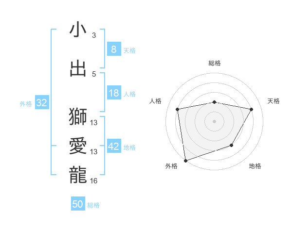 小出 獅愛龍さんを姓名の画数から五運を鑑定