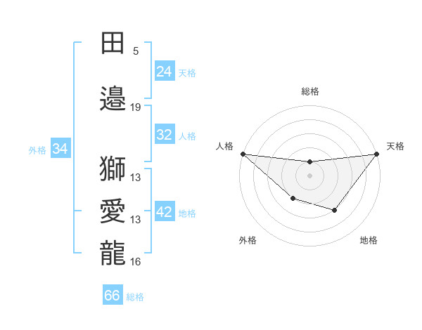 田邉 獅愛龍さんを姓名の画数から五運を鑑定