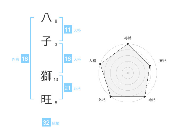 八子 獅旺さんの総格は32画の5点!
