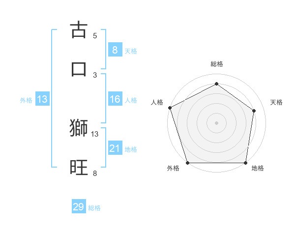 古口 獅旺さんを姓名の画数から五運を鑑定
